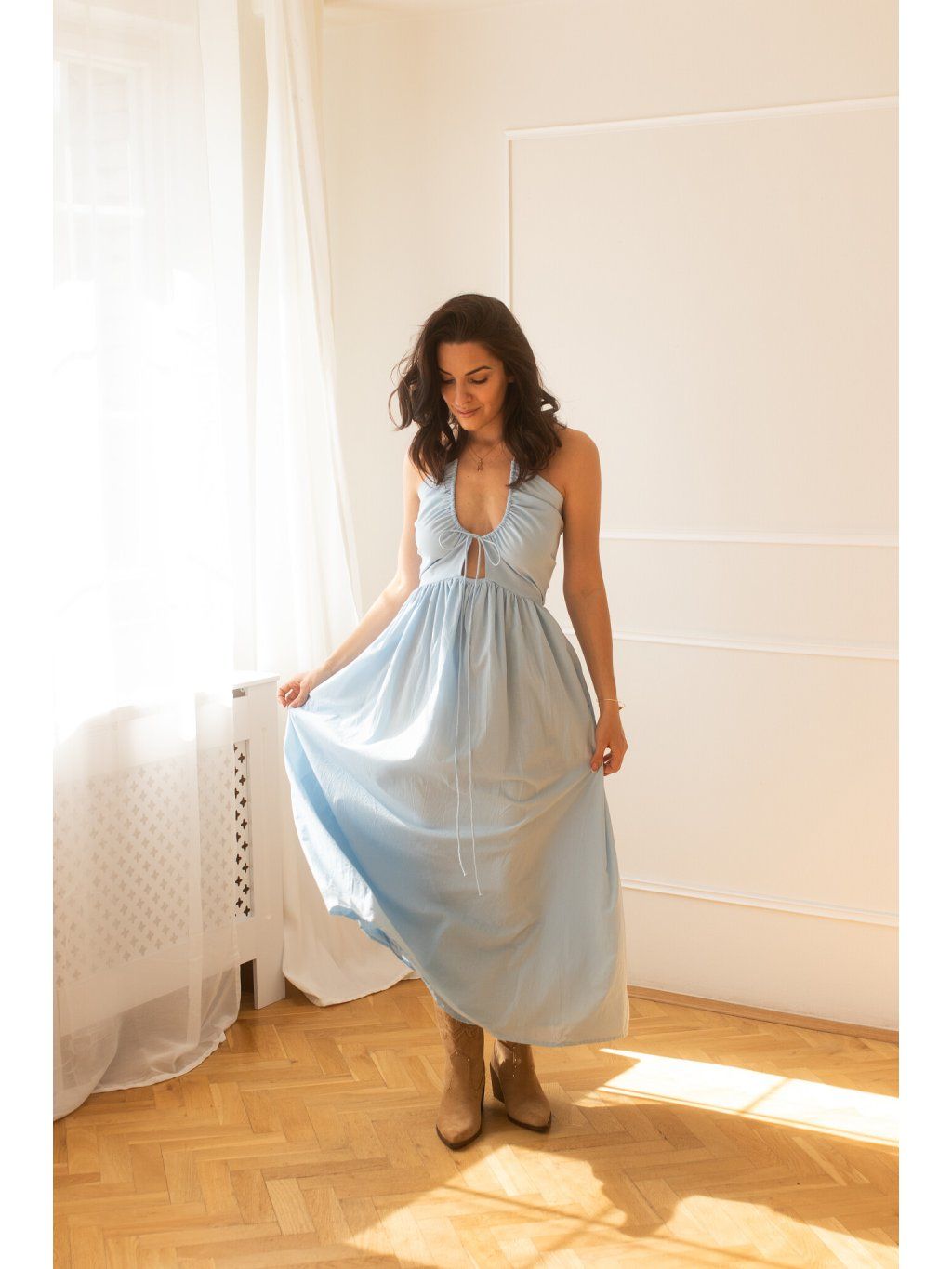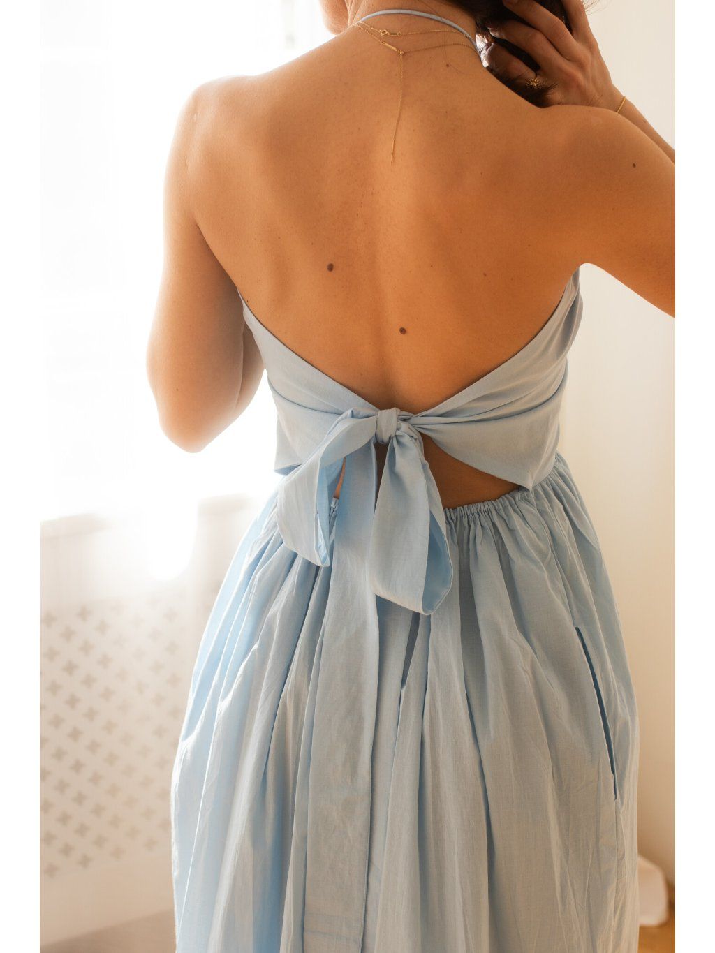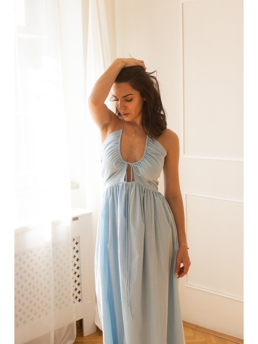 Milujeme, že horní část šatů má dvojitou vrstvu bavlny s podšívkou – to znamená, že si můžeš dovolit jít bez podprsenky a pořád se cítit jistě. Ale víme, že každá z nás má jiné potřeby a comfort zónu. Pro ty z vás, co chcete extra jistotu nebo plánujete tančit až do rána: