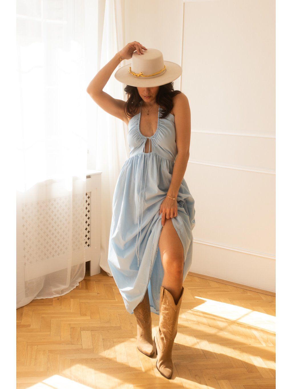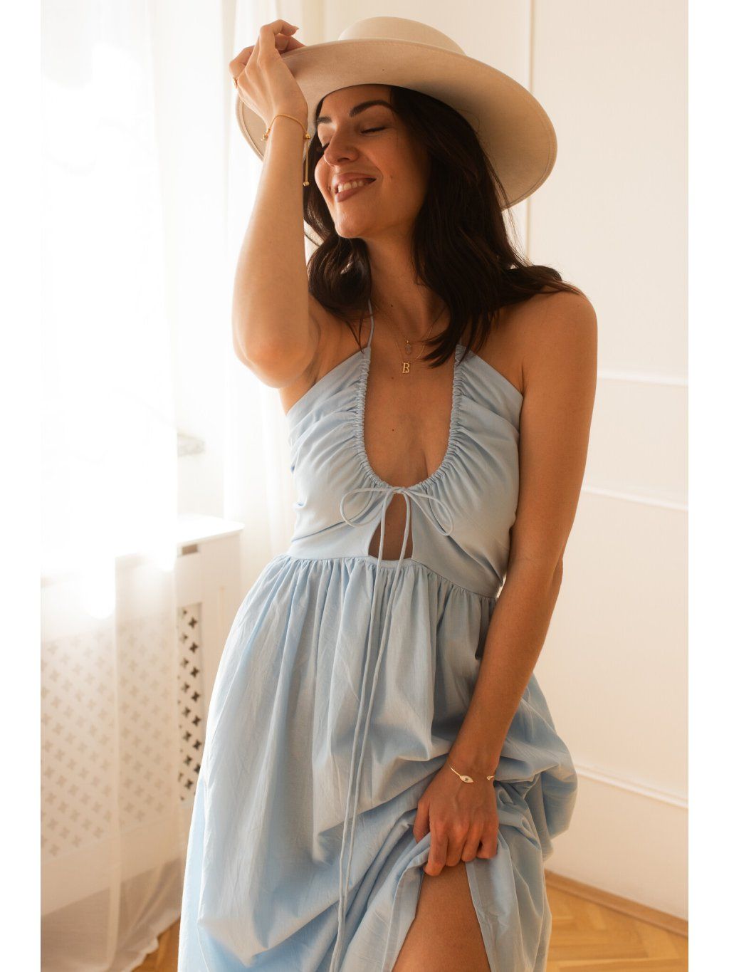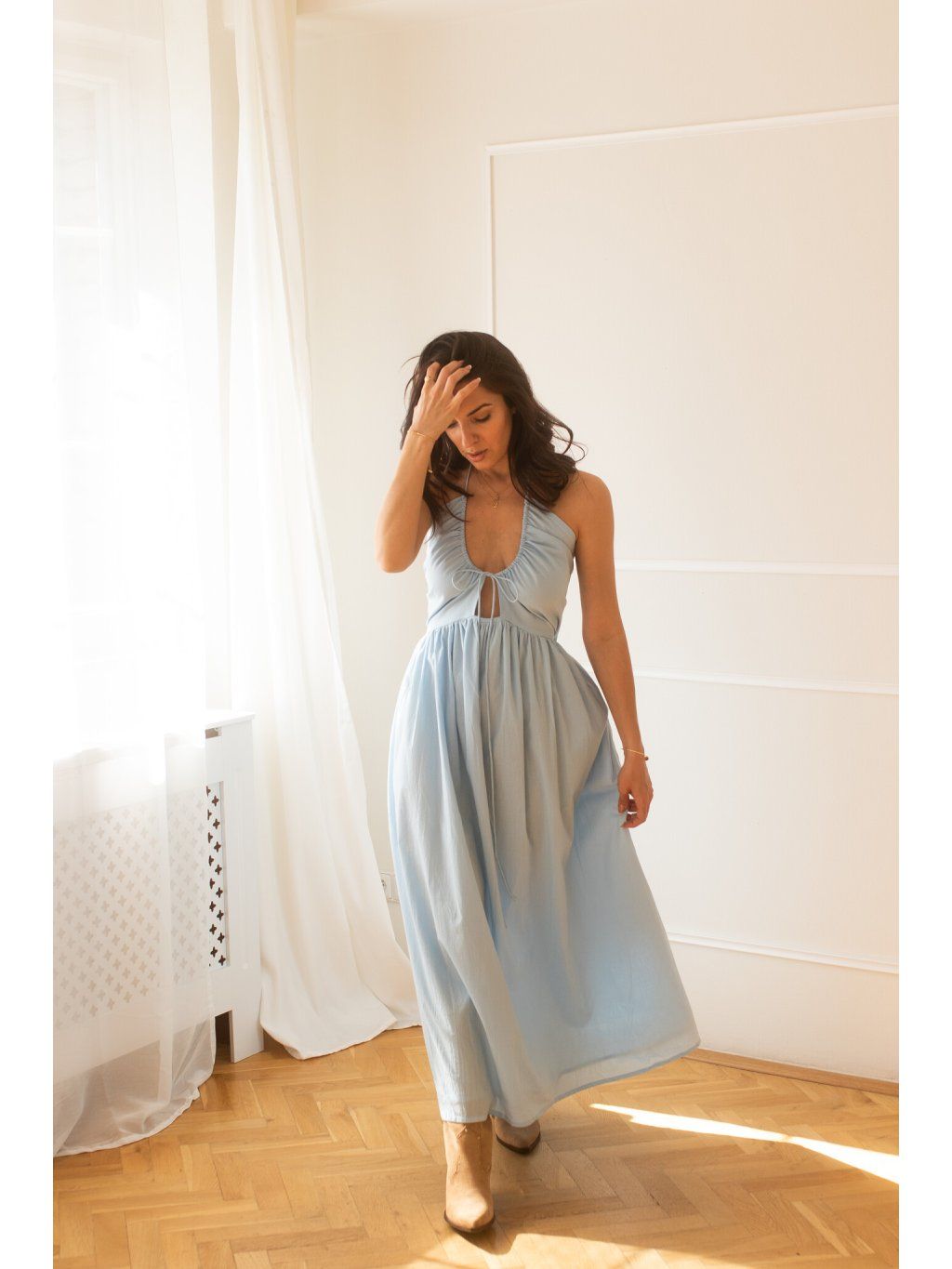 Milujeme, že horní část šatů má dvojitou vrstvu bavlny s podšívkou – to znamená, že si můžeš dovolit jít bez podprsenky a pořád se cítit jistě. Ale víme, že každá z nás má jiné potřeby a comfort zónu. Pro ty z vás, co chcete extra jistotu nebo plánujete tančit až do rána: